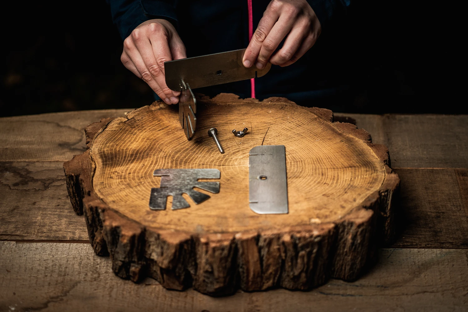 Nun wird die Schraubhalterung über den Fisch gelegt. Damit nichts verrutschen kann, wird sie mit Hilfe von 2 Schrauben oben und unten befestigt.