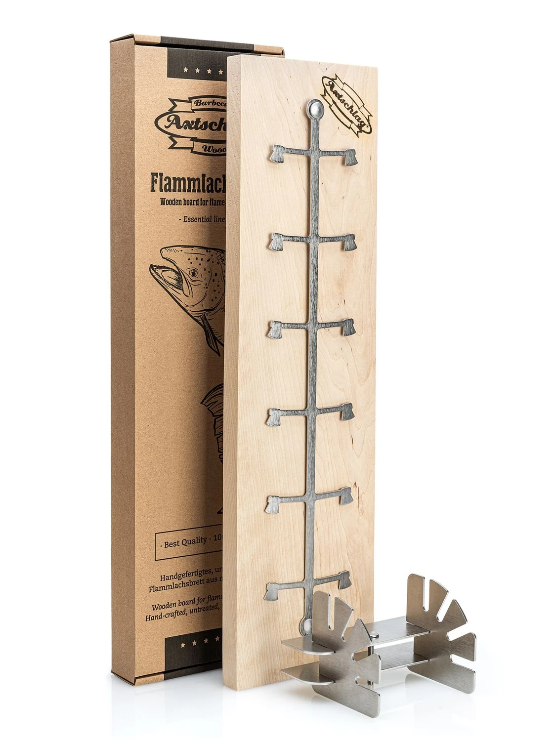 Axtschlag Essential Line Birke Flammlachsbrett mit Schraubhalterung und Haltebügel mit 4 Neigungswinkeln