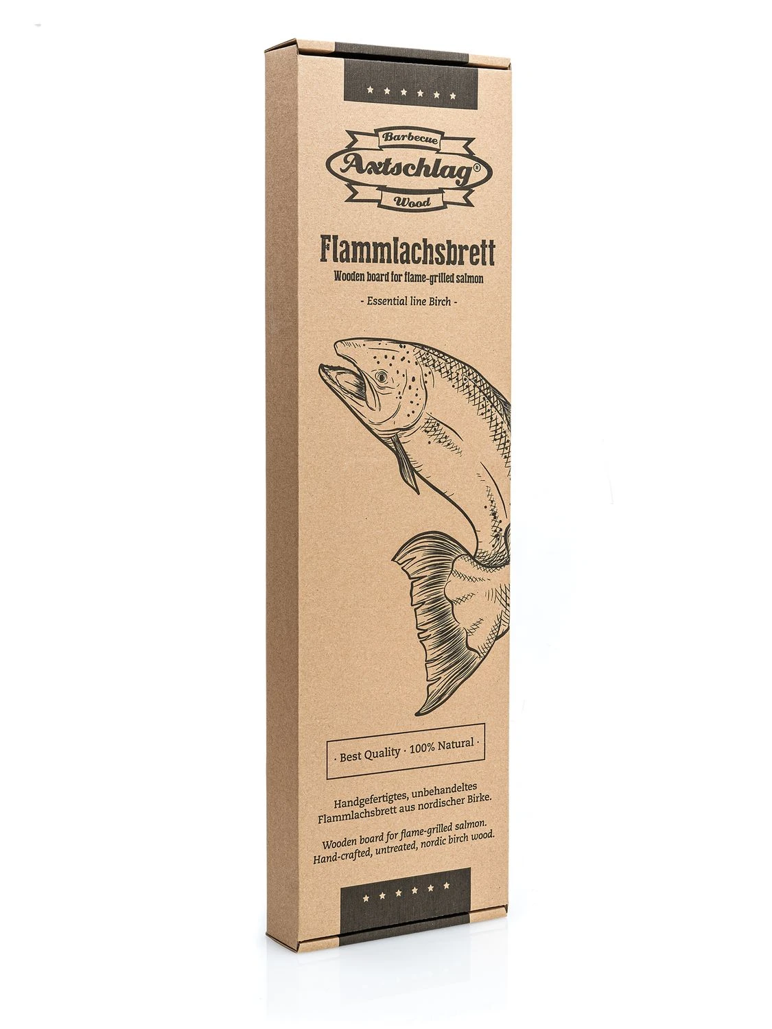 Das hochwertige Essential Line Flammlachsbrett Birke von Axtschlag bietet tolle Highlights: