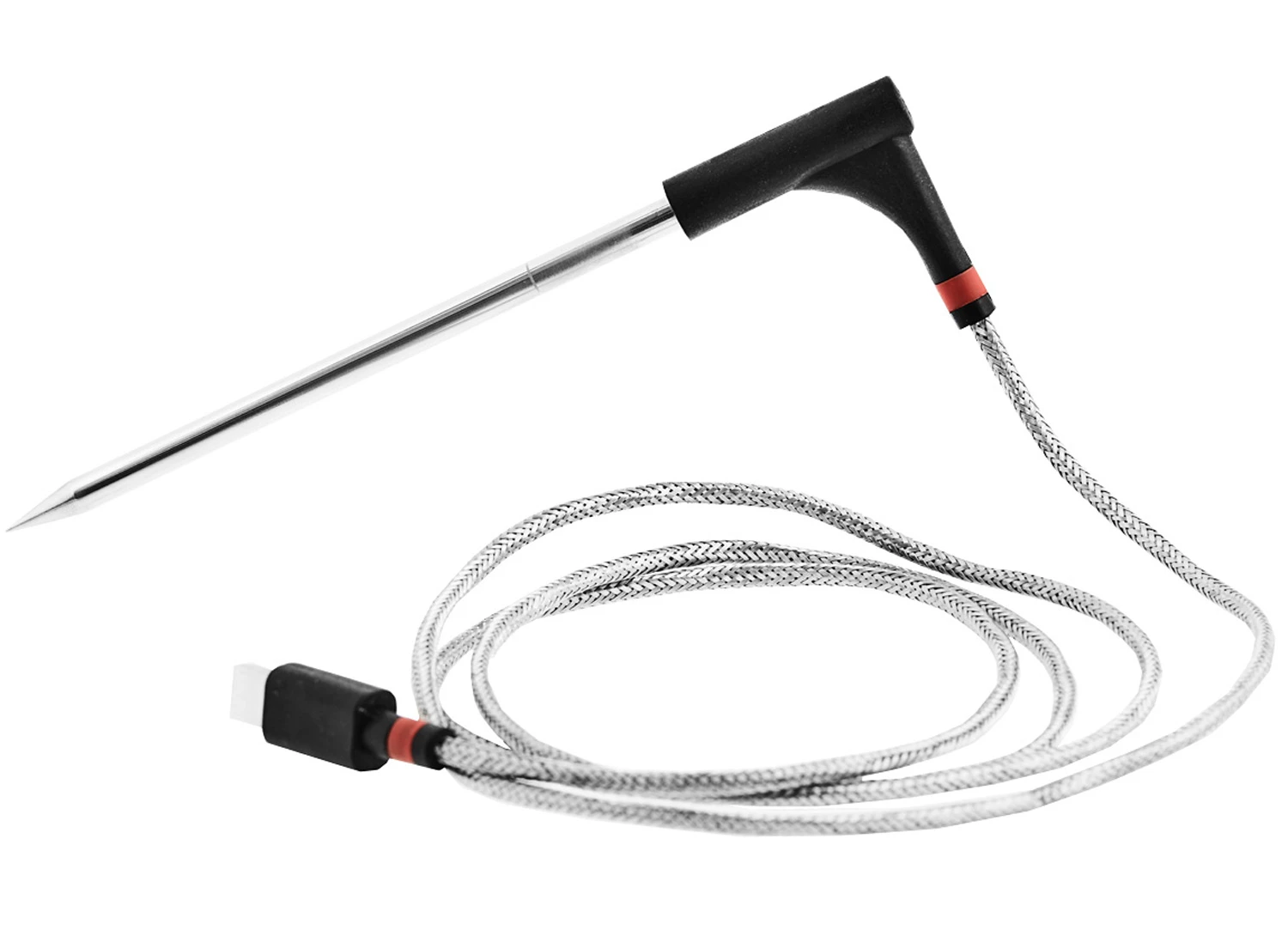 Damit auch gleichzeitig zwei Fleischstücke auf den Punkt gegart werden können, kann der Empfänger mit einem weiteren Kerntemperaturfühler ausgestattet werden, der optional erhältlich ist.
