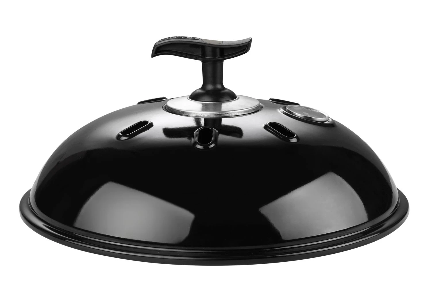 Backen Sie Pizza, braten ein Hähnchen oder überbacken den Gratin mit Hilfe des Deckels. Die Temperatur behalten sie ganz bequem mit dem integrierten Deckelthermometer im Blick.