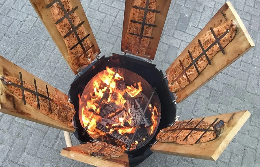 - Achten Sie bei der Platzierung der Flammlachsbretter darauf, dass der Wind im Rücken vom Brett steht. So schlagen keine Flammen gegen das Holz.