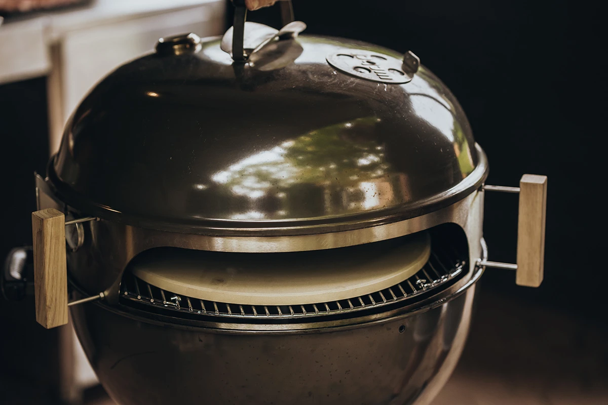 Durch die Öffnung im Ring können die Pizzen prima auf den Pizzastein geschoben werden, ohne dass der Deckel geöffnet werden muss. Mit dem im Ring integrierten Thermometer behalten Sie die Garraumtemperatur immer stets zuverlässig im Blick.