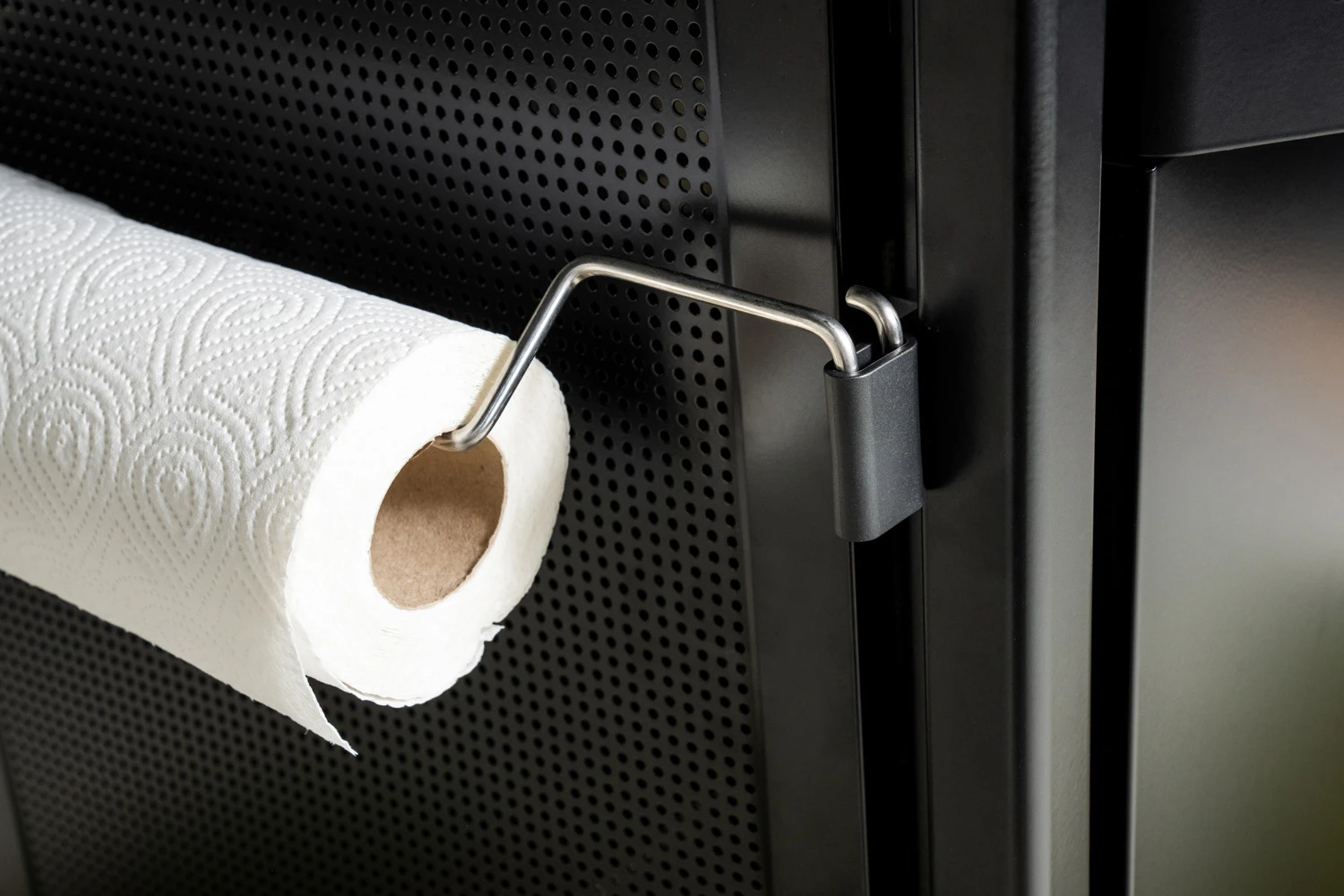 Außerdem ist ein praktischer Küchenrollenhalter im Set enthalten, damit Sie Ihre Finger beim Vorbereiten und Grillen immer schön sauber halten können.
