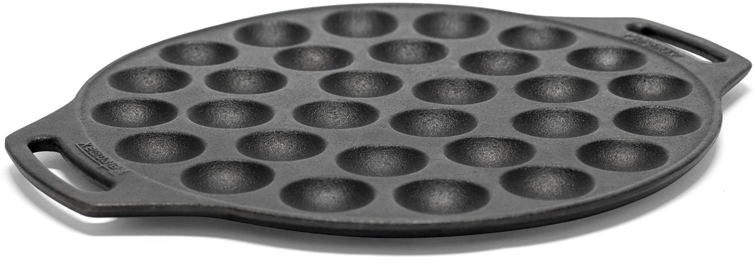 Die Gusseiserne Pfanne besitzt 30 Vertiefungen, in denen die Poffertjes ausgebacken werden können.