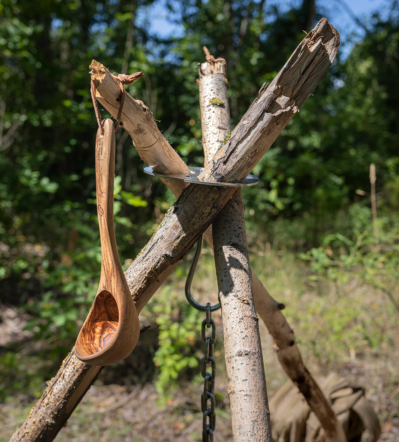 Komplettiert wird die edle Olivenholz Schöpfkelle durch einen praktischen Lederriemen, mit dessen Hilfe sie sich einfach am Gürtel oder Rucksack befestigten oder an einem Besteckhaken aufhängen lässt.