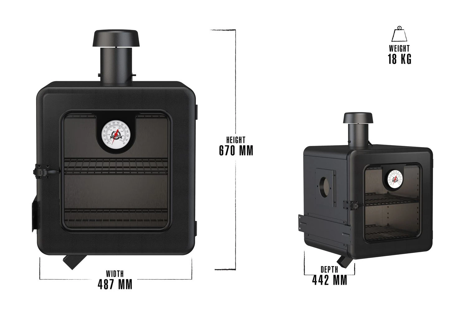 Die Smoker Box lässt sich unkompliziert an der rechten Seite des Garraums montieren, so dass der Rauch perfekt über den zusätzlichen Räucherschrank abziehen kann. Mit dem integrierten Rauchrohr kann die Intensität über eine Luftregulierung optimal eingestellt werden.