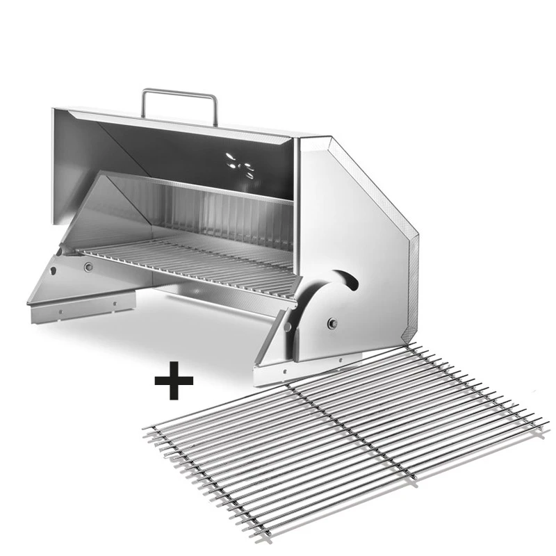 Ein passende Edelstahl Rostauflage und ein Warmhalterost sind bei der Schwenkhaube bereits dabei, denn es können nur Rostauflagen ohne Griffe verwendet werden.
